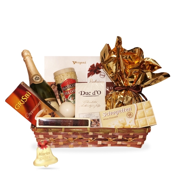 Gold Pearls este un cadou elegant, ce contine specialitati dulci, precum panettone, biscuit, praline fine, trufe din ciocolata alba cu capsuni, pates de fruits si ciocolata alba, toate acompaniate cu succes de un vin spumant savuros. Cosul cadou este ambalat si decorat manual, in spiritul Craciunului, gata de a fi oferit cu ocazia sarbatorilor de iarna.