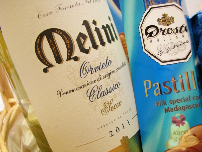 Oriveto este un cadou deosebit, ce contine specialitati dulci, precum panettone, biscuiti deliciosi si pastile de ciocolata fina cu lapte, toate acompaniate cu succes de un vin alb savuros. Cosul cadou este ambalat si decorat manual, in spiritul Craciunului, gata de a fi oferit cu ocazia sarbatorilor de iarna.