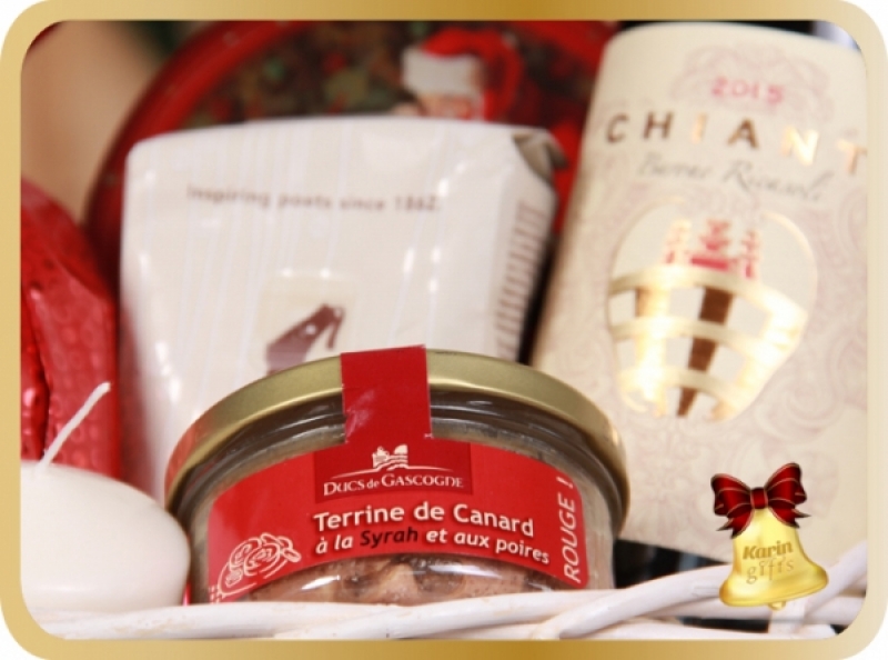 Red Lights este un cos cadou special ce contine delicii precum panettone cu portocala, fursecuri si terina de rata cu vin syrah. Toate acestea sunt acompaniate de un vin rafinat si o cafea aromata. Cosul este decorat manual si transformat intr-un cadou special pentru sarbatorile de iarna!