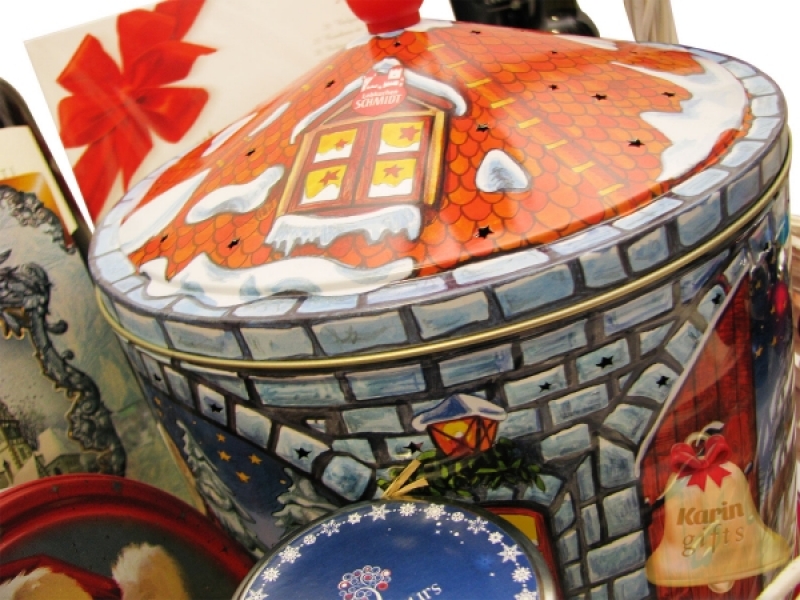 Caruselul metalic Lebkuchen Schmidt “Santa Claus” este un adevarat cufar plin cu magia Craciunului. Acesta este pictat in spiritul sarbatorilor si imbogatit cu mici ferestre sub forma de stelute, ce dau nastere unor raze delicate de lumina si confort, caruselul fiind iluminat din interior. Mecanismul rotativ da tonul sunetului suav al colindului “Feliz Navidad”, aducand bucuria Craciunului in sufletele tuturor si creand atmosfera perfecta pentru savurarea sortimentelor delicioase de turta dulce, biscuiti si fursecuri germane de prima clasa, aflate in interiorul caruselului muzical.
