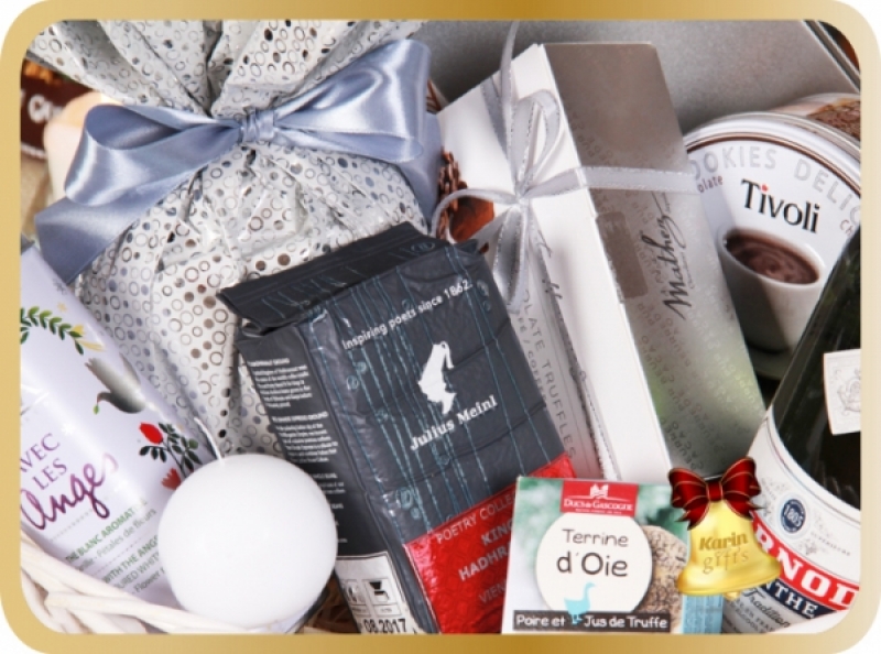 Christmas Angels este un cos cadou deosebit ce contine specialitati dulci precum panettone, ciocolata belgiana, trufe, fursecuri, dar si delicatese precum terina de gasca.si turta dulce. Toate acestea sunt acompaniate de un absinte rafinat, o cafea intensa si un ceai cu arome distinse. Cosul este decorat manual si transformat intr-un cadou special pentru sarbatorile de iarna!