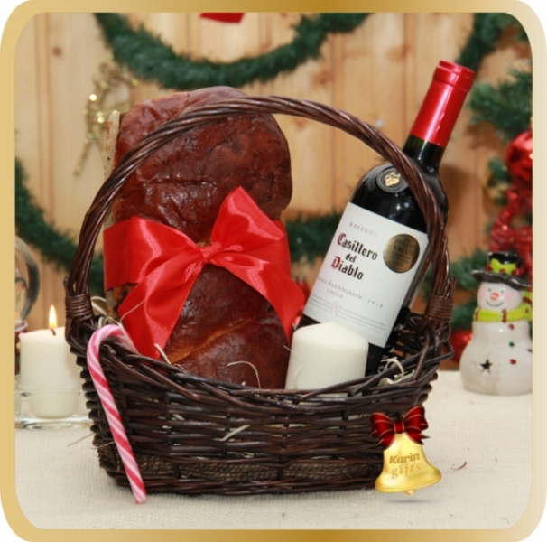 Christmas Flavour este un cos cadou special ce contine dulciuri precum cozonacul traditional si o acadea specifica Craciunului. Toate acestea sunt acompaniate de un vin rafinat. Cosul este decorat manual si transformat intr-un cadou special pentru sarbatorile de iarna!