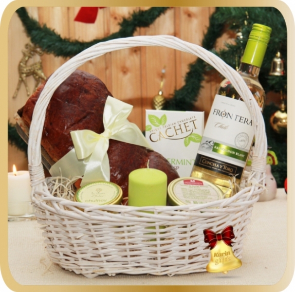 Christmas Morning este un cos cadou special ce contine delicii precum cozonacul traditional, ciocolata belgiana, chutney si terina de pui cu anason. Toate acestea sunt acompaniate de un vin alb rafinat. Cosul este decorat manual si transformat intr-un cadou special pentru sarbatorile de iarna!