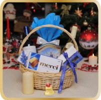 Fancy Blue este un cadou deosebit, ce contine specialitati dulci panettone, ceai, nuci braziliene in ciocolata, bomboane si tablete de ciocolata, toate acompaniate de vin rosu si alb. Cosul cadou este ambalat si decorat manual, in spiritul Craciunului, gata de a fi oferit cu ocazia sarbatorilor de iarna.