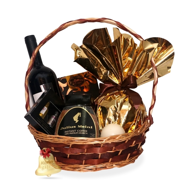 Fine Black este un cadou rafinat, ce contine specialitati dulci, precum panettone, trufe cu bucati de caramel si unt sarat si ciocolata cu lichior Anthon Berg, toate acompaniate cu succes de un vin rosu intens si de o cafea instant aromata. Cosul cadou este ambalat si decorat manual, in spiritul Craciunului, gata de a fi oferit cu ocazia sarbatorilor de iarna.