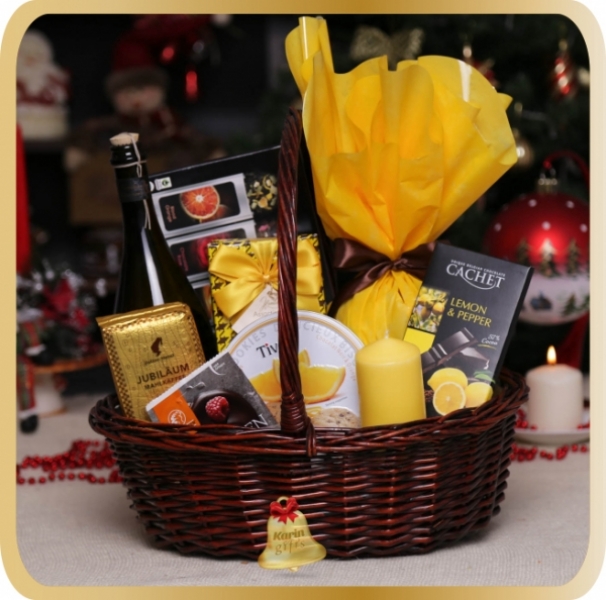 Lemon Cake este un cadou deosebit, ce contine specialitati dulci precum panettone, praline, cafea, zmeura in ciocolata, ceai, fursecuri, tableta de ciocolata, toate acompaniate de prosecco. Cosul cadou este ambalat si decorat manual, in spiritul Craciunului, gata de a fi oferit cu ocazia sarbatorilor de iarna.