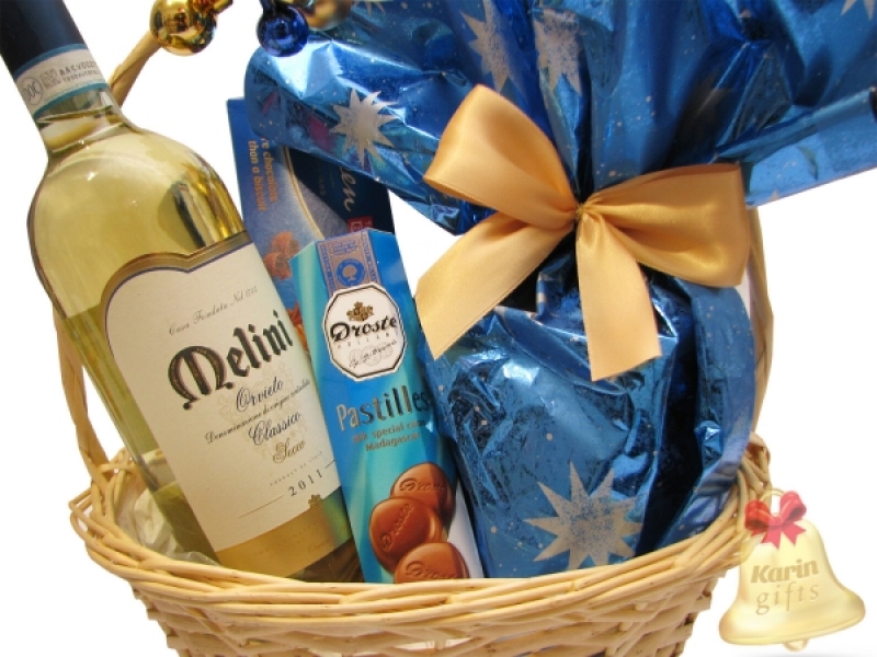 Oriveto este un cadou deosebit, ce contine specialitati dulci, precum panettone, biscuiti deliciosi si pastile de ciocolata fina cu lapte, toate acompaniate cu succes de un vin alb savuros. Cosul cadou este ambalat si decorat manual, in spiritul Craciunului, gata de a fi oferit cu ocazia sarbatorilor de iarna.