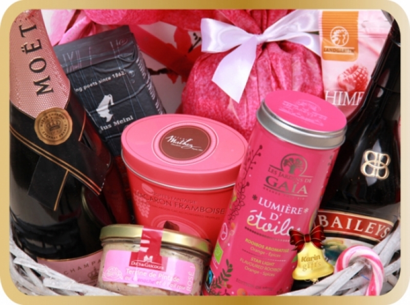 Pink Christmas este un cos cadou deosebit ce contine specialitati dulci precum panettone, zmeura in ciocolata, trufe de ciocolata cu macarons si multe altele. Acesta mai contine si delicatese precum terina de bibilica cu usturoi roz. Toate acestea sunt acompaniate de o sampanie rose rafinata, un liqueur si un ceai cu arome distinse. Cosul este decorat manual si transformat intr-un cadou special pentru sarbatorile de iarna!
