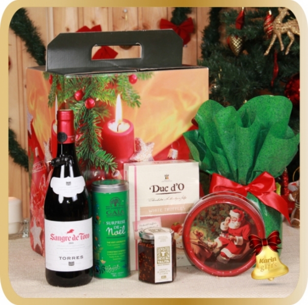 Christmas Candle este o cutie cadou speciala ce contine delicii precum panettone cu portocala, trufe, fursecuri si chutney. Toate acestea sunt acompaniate de un vin rafinat si un ceai aromat. Cutia este decorata manual si transformata intr-un cadou special pentru sarbatorile de iarna!