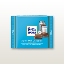 Ciocolata Ritter Sport Alpin Milk este bucuria pură a ciocolatei. Cu toate acestea, acest lucru nu este doar din cauza amestec delicios de 100% lapte pur alpin și 30% cacao Ghana special prăjită. Secretul gustului său fin se află in procesul care ii da o aroma speciala, acestei ciocolate,de caramel si miere. Există, de asemenea, senzatia cremoasa a acestui ciocolată, așa cum se topește incet, bucată cu bucată, pe limba. Acesta este un gust care poate muta muntii!