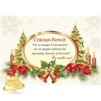 Felicitare personalizata de Craciun cu brazi si clopotei